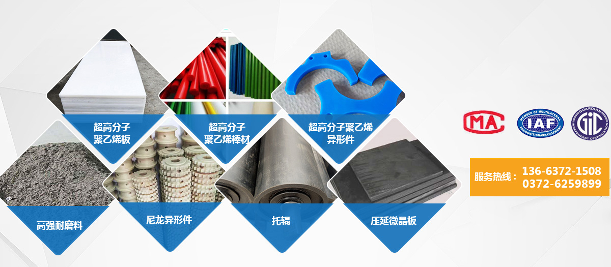 公司以超高分子量聚乙烯板材制品系列。主要產(chǎn)品有:超高分子量聚乙烯系列、聚乙烯系列、微晶鑄石系列、尼龍系列、托輥系列、高強度耐磨料、耐磨陶瓷系列等;